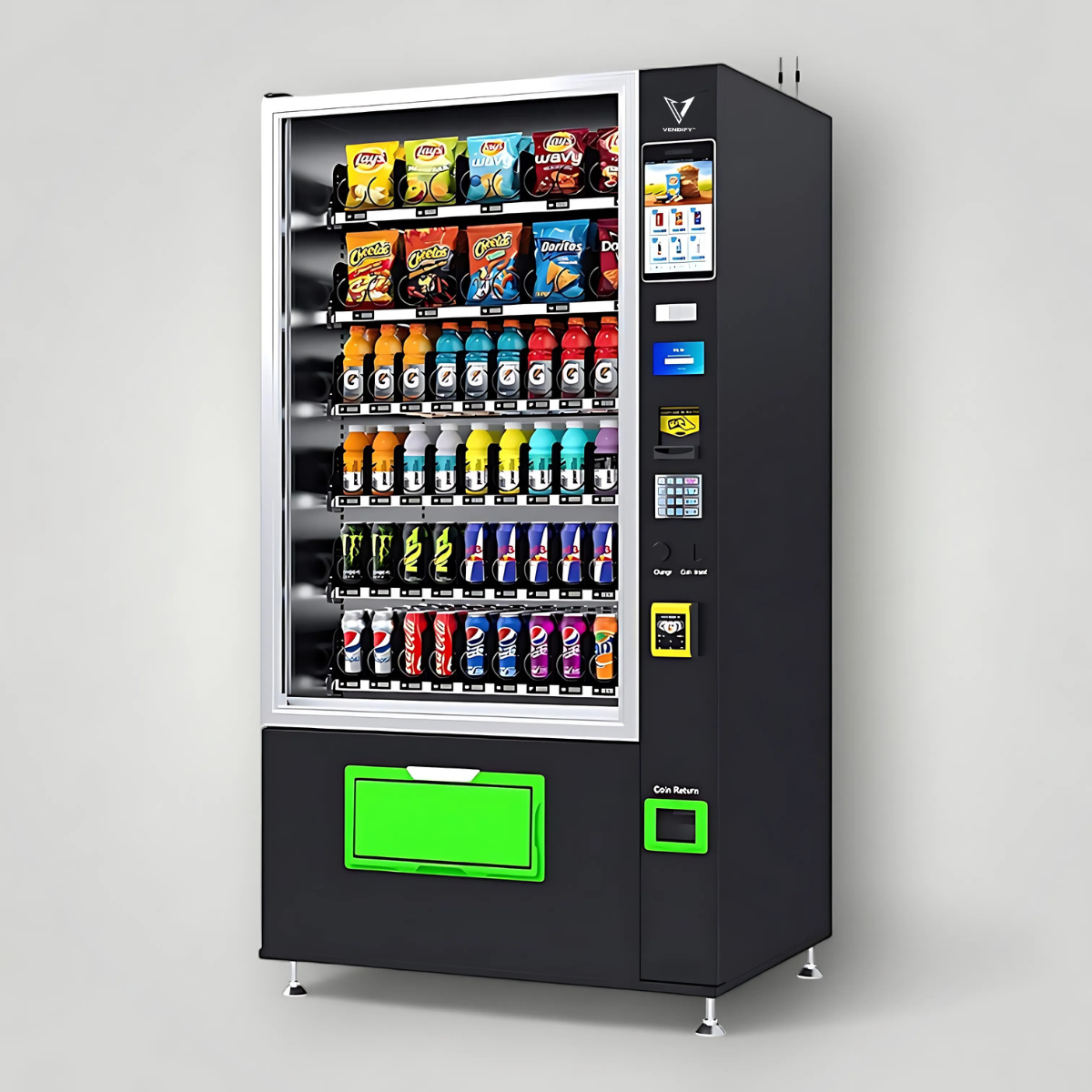 The Vendify™ Mach 1.2 is a high-capacity, fully refrigerated vending machine built for modern vending businesses, offering unmatched flexibility, technology, and energy efficiency. Engineered to store and sell snacks, drinks, and combo items, it's ideal for busy commercial locations such as schools, offices, hospitals, gyms, and retail centers.